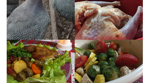 Готовлю мясо цесарки с овощами в духовке.