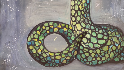 Как просто и быстро нарисовать змею- символ 2025 года гуашью