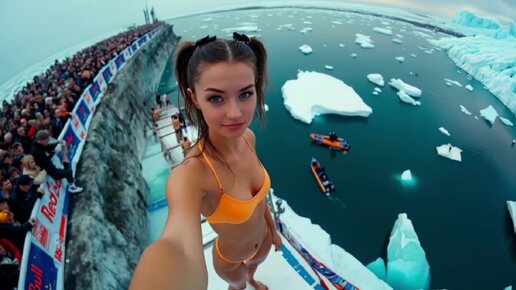 Girls winter cliff diving