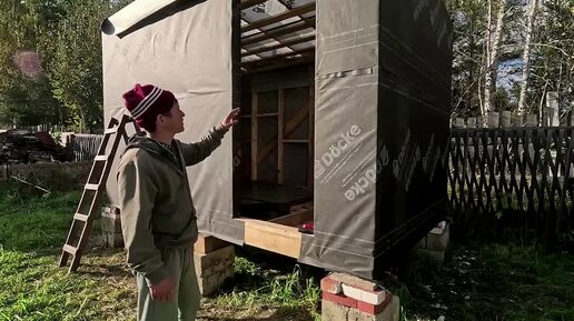 Жизнь в Глубинке России как я строил вторую каркасную баню с беседкой один