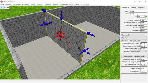 Установка длины для стен из клавиатуры