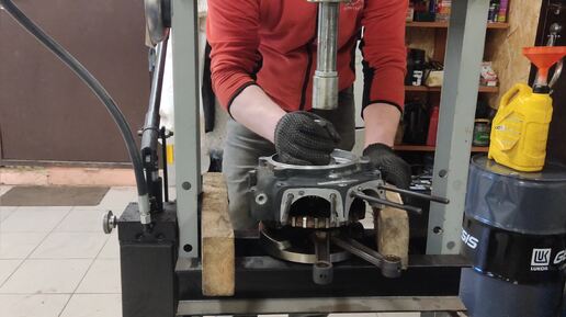 Витя выпрессовывает коленвал Harley-Davidson из картера