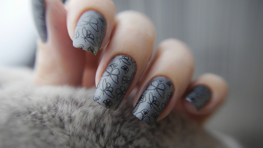 Маникюр матовый металлик, стемпинг дизайн (обычный лак)