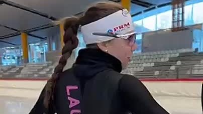 Конькобежки разминаются перед тренировкой👏