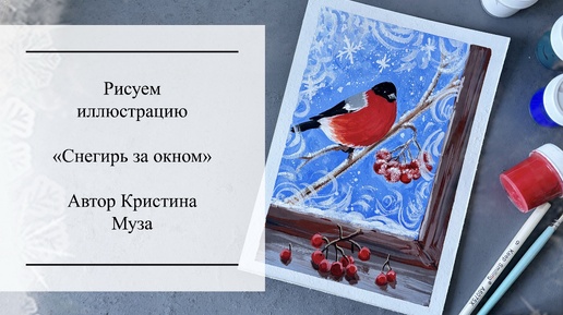 Рисуем иллюстрацию «Снегирь за окном» рисование для начинающих с подробным объяснением. Рисуем гуашью. Обучение рисованию.