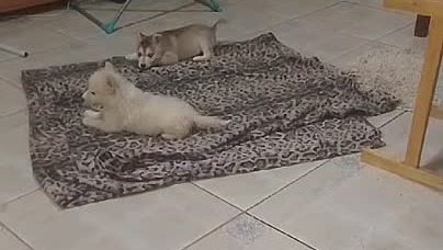Щенок не может ходить, с трудом даёт отпор сестре