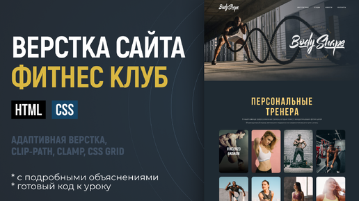 Адаптивная верстка сайта CSS HTML 2025. Макет BodyShape. Подробный урок. CSS Grid