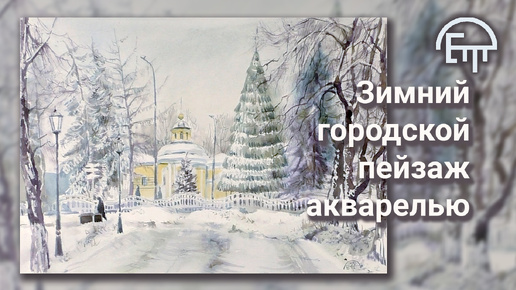 Зимний городской пейзаж акварелью