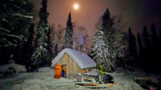С ночёвкой в тайгу! На буране до избы! Все замело, откопал избушку от снега! Плов в казане на костре.