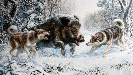 Сибирские Волки и Кабаны в дикой природе под сингл White Mountain "Белая Гора"