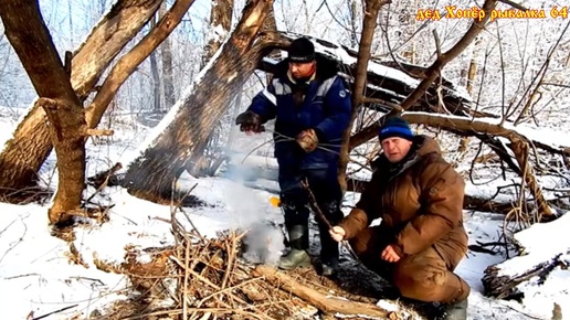 Перекус только у костра на зимней рыбалке.Кормим пернатых. о пернатых.