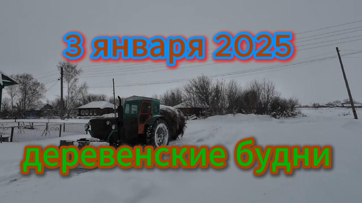 Деревенские будни, чистим снег, прогулка в поле, 3 января 2025