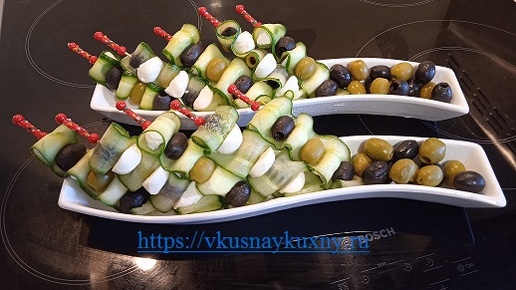 Канапе с моцареллой и оливками