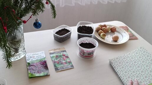 Сею землянику Барон Солемахер и петунии, черенкую колеусы, довольна грунтом, лук на зелень.