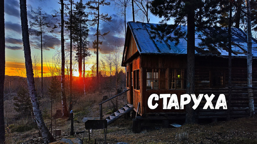 Тайга, зимовьё и старуха