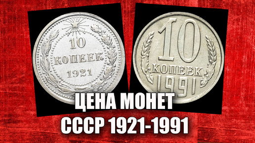 Стоимость на редкие и ценные монеты СССР 10 копеек 1921-1991 годов