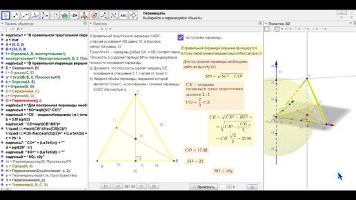 Тренировочный вариант 269 профи ЕГЭ 2025 задание 14. В правильной треугольной пирамиде SABC сторона основания AB равна 30, а боковое ребро