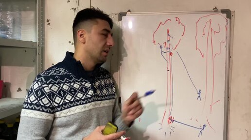 Спил макушки дерева со спуском на веревке. Самый опасный момент в удалении дерева.