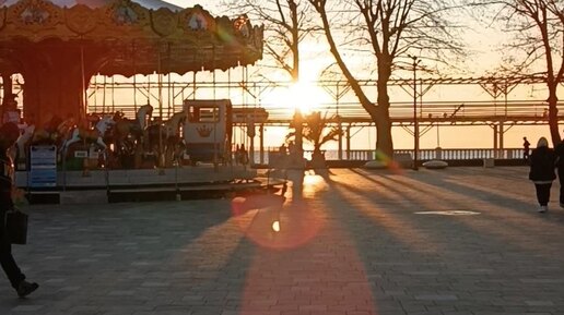 Лазаревское. Середина зимы. Вечерняя прогулка. Закат на море.
