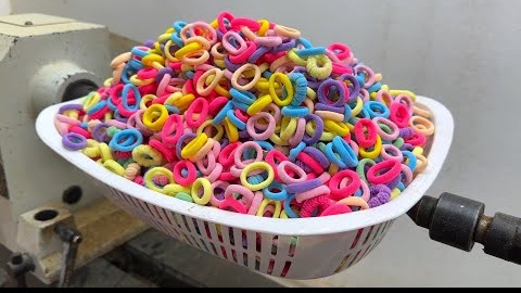 Дизайн из детских резинок для волос и эпоксидной смолы на токарном станке.