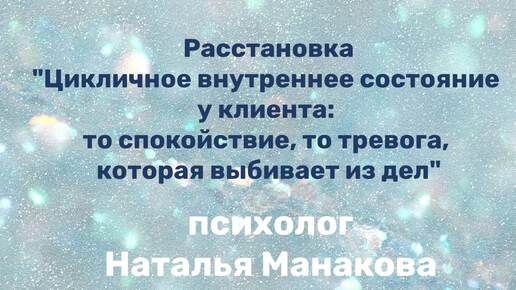 Расстановка "Цикличное внутреннее состояние у клиента: то спокойствие, то тревога, которые выбивают из дел"