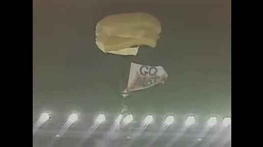 Приземление Майкла Серхио в разгар бейсбольного матча на стадион "Ши", США 1986 год.