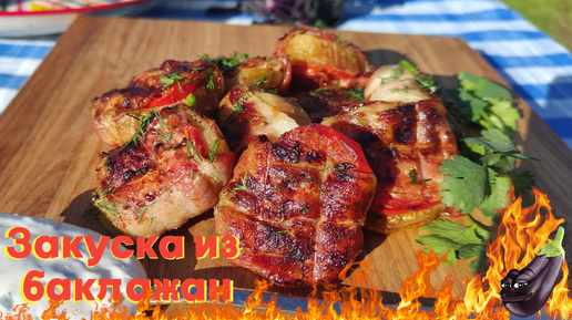 Вкусный рецепт закуски из баклажан в беконе на мангале.