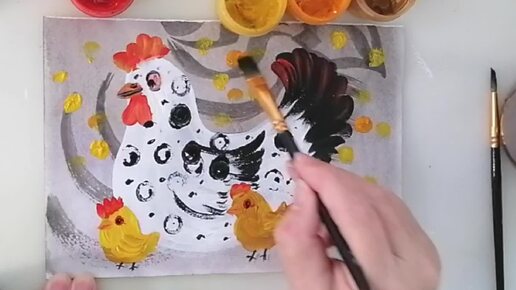 Очень Простой рисунок. Любой ребёнок справится. Гуашь. Курочка с цыплятами. Рисовать легко и просто.