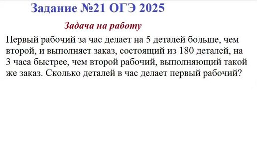 Задача на работу из банка ФИПИ. Задание №21, 2 часть ОГЭ по математике