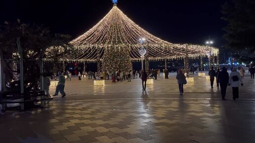 Атмосфера предновогодней набережной курорта Ялта с самой красивой новогодней ёлкой в Крыму