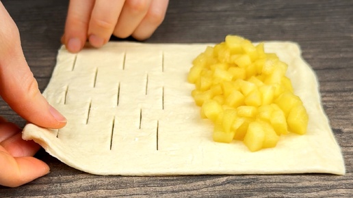 Если у вас слоеное тесто, просто нарежьте 3 яблока. Праздничный десерт за 10 минут