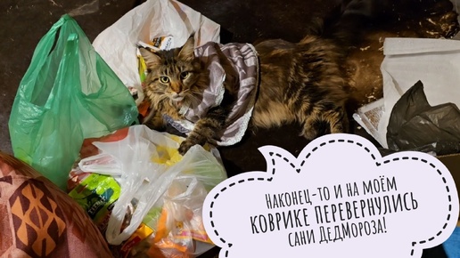 Кошка Морошка помогает распаковывать посылочки с новогодними длявсехними подарками