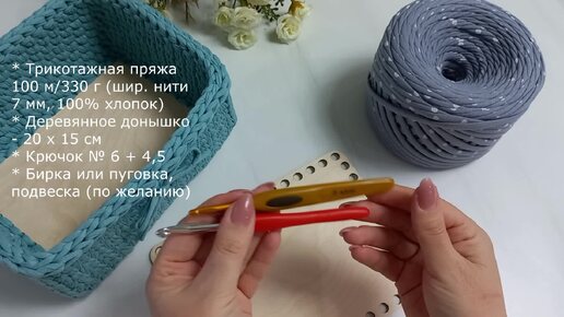 МК прямоугольная корзинка из трикотажной пряжи с деревянным донышком
