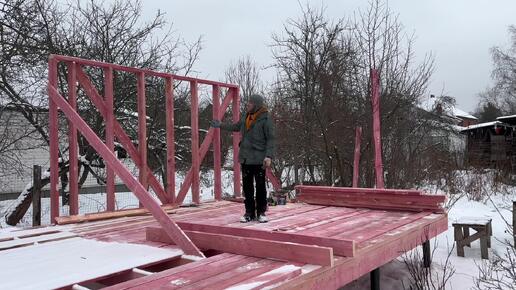 Далее: Строю каркасный дом сам. 18-19 января 2025 - закончил с укосинами и стойками!