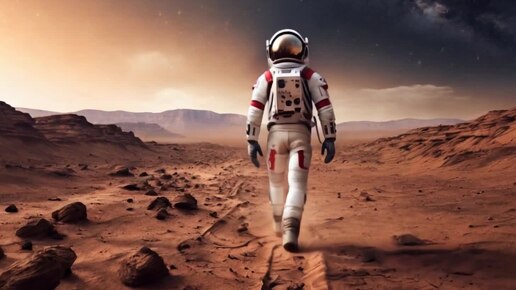 Путешествие астронавта по марсианской местности - видеоработа AI