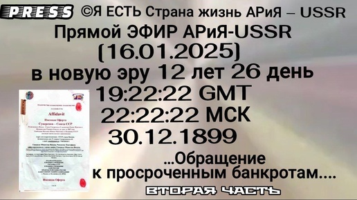 Вторая часть [16.01.2025]в новую эру 12лет26 день30.12.189...Обращение к просроченным банкротам....
