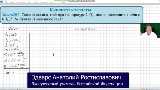 Физика10 ОК 041 Задача 6 Количество теплоты. Сколько стали взятой при температуре 20°С, можно расплавить в печи с КПД 50%, сжигая 2т камен..