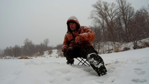 Очередная рыбалка в январе в снегопад!
