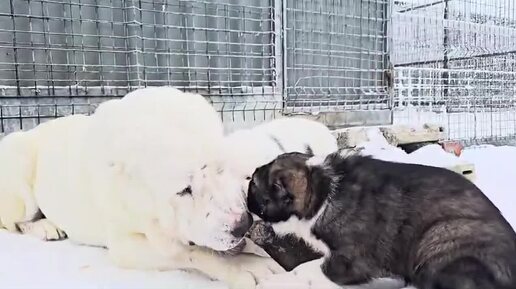 Щенки на прогулке со своей мамой Данаей