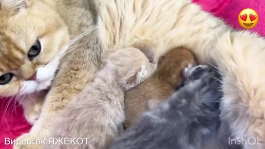 Мама-кошка заботится о приемных котятах, как о своих! Вот это любовь!😻