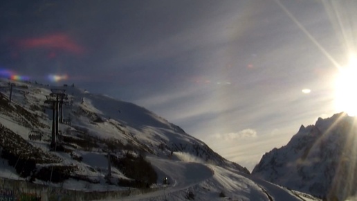Горы освещает солнце и слепит лицо