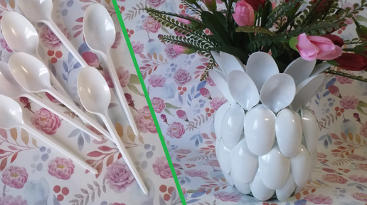 ВАЗА из пластиковых ложек и стеклянной БАНКИ своими руками Декор банки Как Сделать вазу из банки