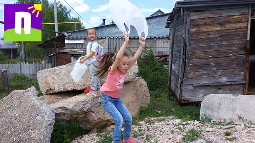 Дети отдыхают на огороде / Фундаментные блоки отдаём бесплатно