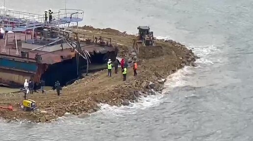 Завершения строительства вала вокруг кормы танкера «Волгонефть-239» прям перед ухудшением непогоды