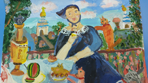 Мишина интерпретация картины Кустодиева "Купчиха за чаем"