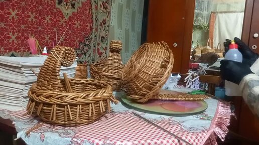 Курица - загребушка из бумажной лозы ) пасхальная корзинка . Часть 2