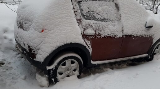 Машина полностью завалена снегом за ночь