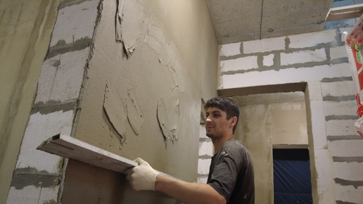 Как правильно оштукатурить дом либо квартиру внутри. Проникающая грунтовка, Адгезионный Обрызг, Штукатурка по маячкам. Baumit MPI25.