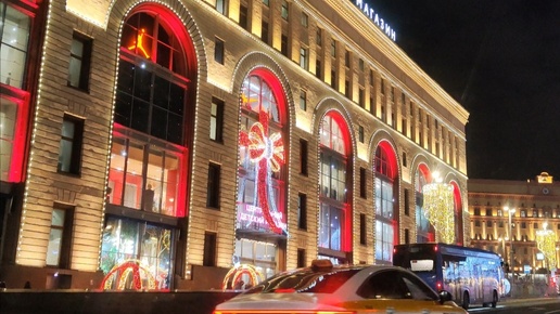 Вечерняя Москва ещё в праздничном убранстве