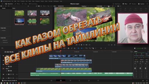 Как я обрезаю все файлы разом на таймлинии в Davinci Resolve